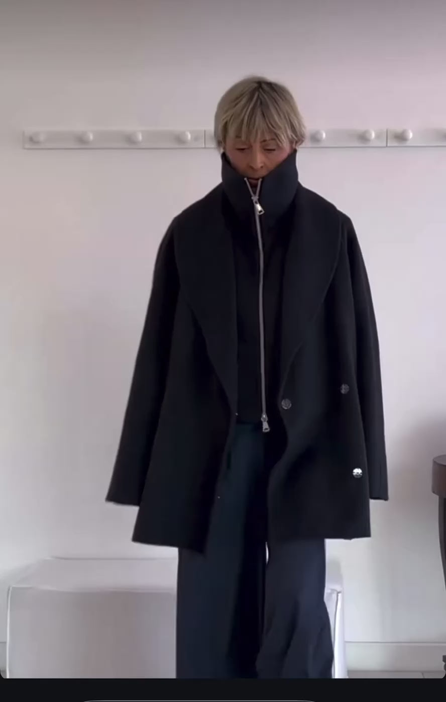 It is distinguished by elegant magnetic buttons and a double collar. The removable front inner panel allows you to achieve a more polished appearance, enhancing its versatility.